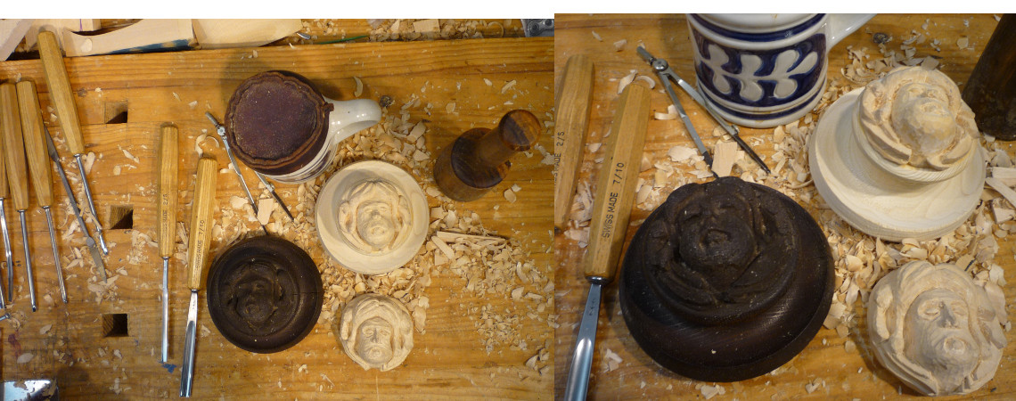 The top will have a pin for a removable finial. As part of this job I will also carve a traditional carved pineapple, a beer mug and martini for starters. They will swap out the finials based on their mood.