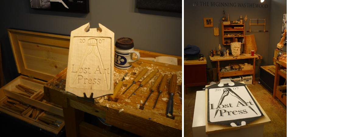 This is a recent commission for Lost Art Press. They needed a new handmade wooden sign for their tradeshows. The sample was used to make sure that they liked the design and I am just starting on the full size sign. It is approximately 36″ high. It is loosely based on British Pub signs from the 1700’s. Most were painted but this one will be carved.